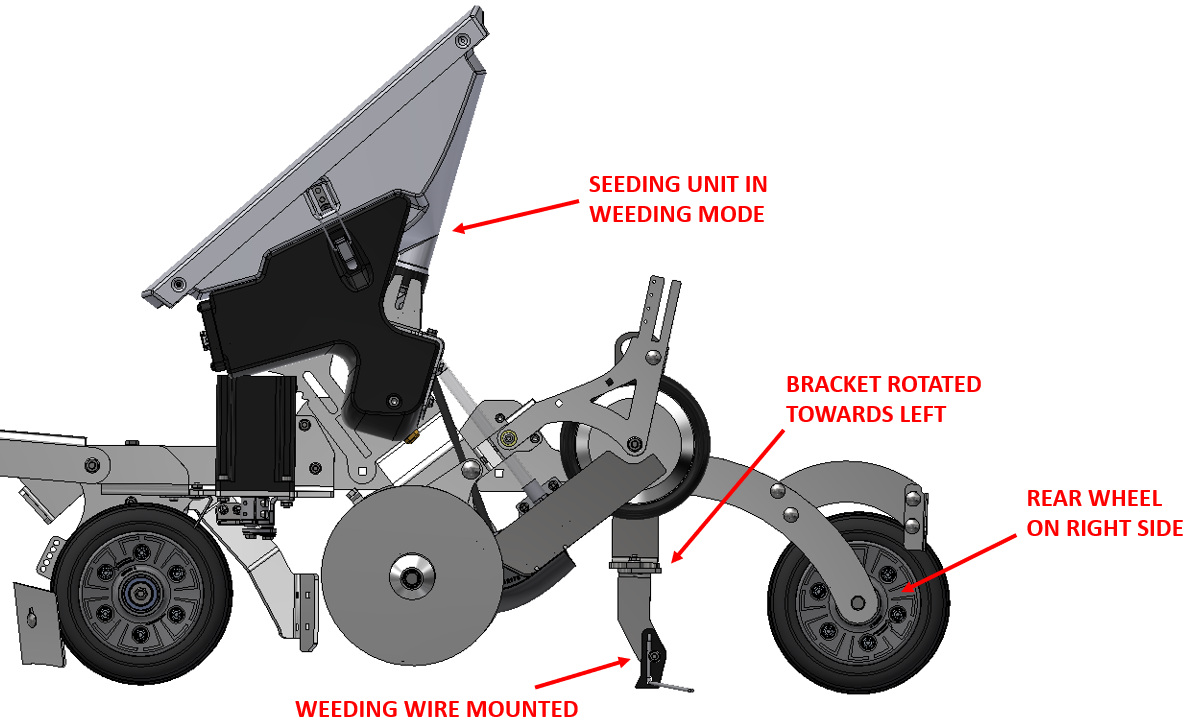 - Position the seeding assembly in the weeding configuration, ensuring it matches the reference image below.