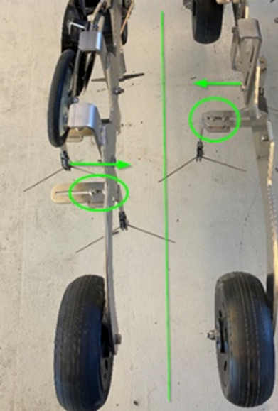 - Shift the rear wheel of the active trailer to the right side of the trailer frame, as illustrated in the image below.