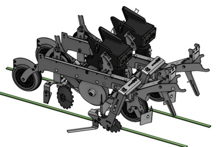 Placé sur la remorque active pour désherber le côté gauche de la rangée