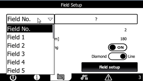 Sur l'écran principal de l'IHM, glisser vers la droite jusqu'à la page 3 intitulée "Field Setup" (Configuration du champ).
