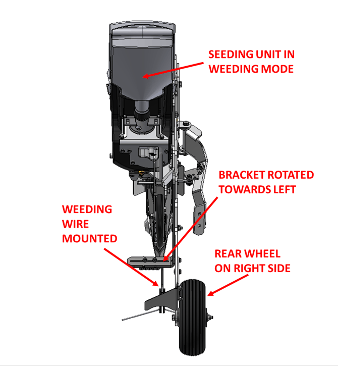 - Zet de zaai-eenheid in de onkruidbestrijdingsstand, zodat deze overeenkomt met de onderstaande referentieafbeelding.