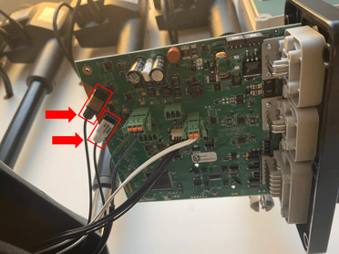 Detach the two optic fiber cables of the light sensor from the PCB by: